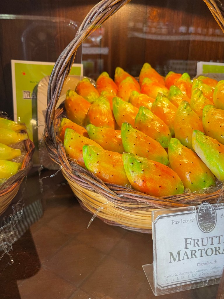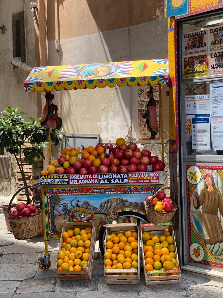 Pored svega ovoga ne bih gubio vrijeme na Palazzo dei Normanni (kraljevsku palaču i vrtove) što je glavna preporuka u svim vodićima. Radije šećite prelijepim trgovima i otkrivajte skrivene uličice. Palermo traži odmor. Sjeo sam u obližnju kavanu pretrpanu cannolima i košarama voća napravljenog od marcipana. Za kasom sjedi matrona u leopard uzorku od glave do pete, uključujući masku! To je pravi Palermo! E sad mogu natrag na selo…