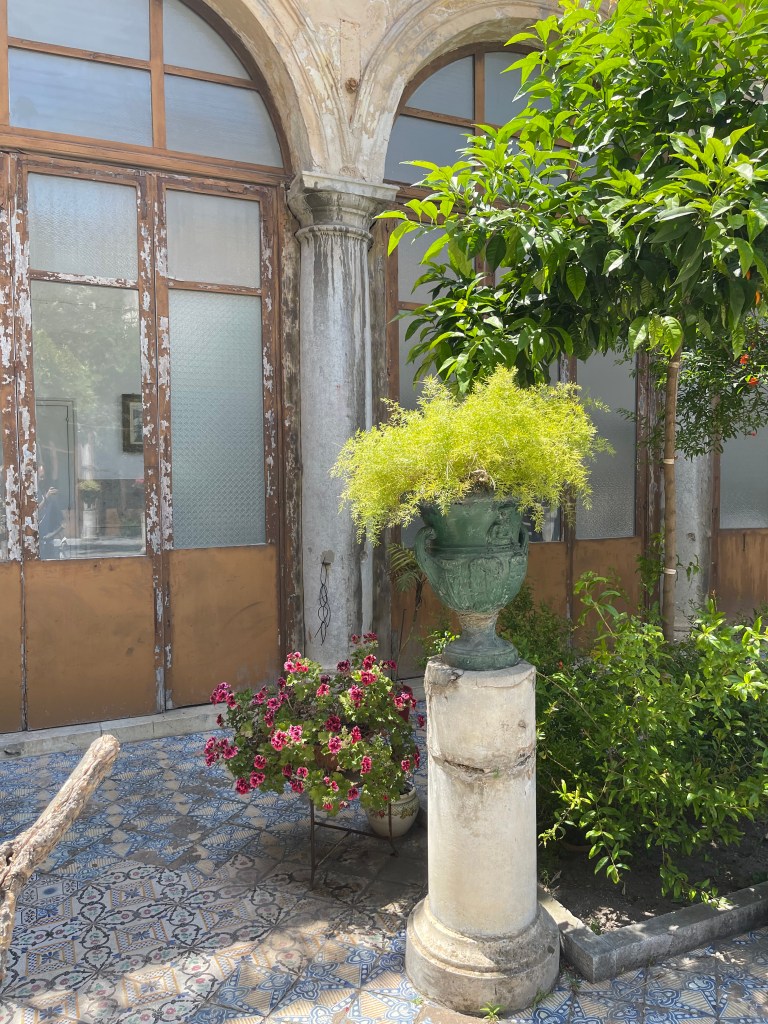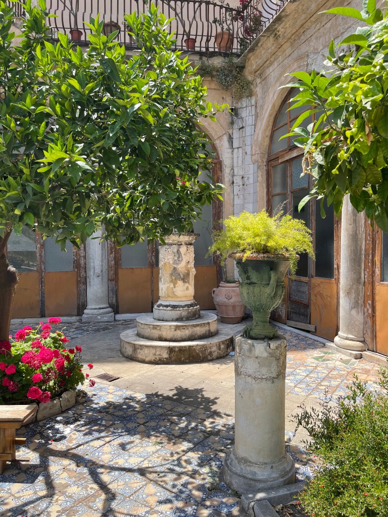 Kuća je divna ali totalno zapustena i neodržavana. Terase nepometene, biblioteka u prasini, u ormarima se osjeća vlaga… sve je puno antiknog namještaja i šarene keramike…podsjetilo me na film Call me by your name pa mi je bilo lakše. Možda je tako trebalo biti da se konačno resetiram, opustim i uživam u onom najboljem.
