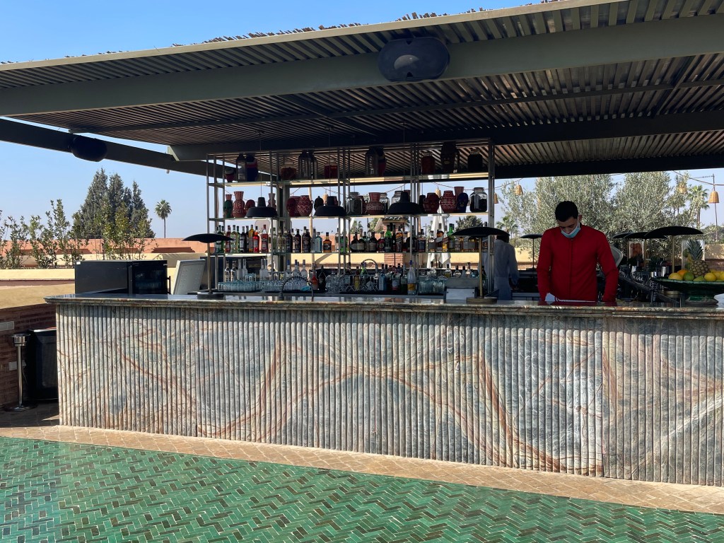 U subotu će na večeru doći Madison Cox, čovjek koji se brine o cijeloj ostavštini YSL i Pierre Bergea. A i Pierre Berge je često dolazio u L’Hotel de Marrakech. Ujutro za doručkom upoznajemo američkog pisca koji je došao iz Irske, pa se raspituje kako je Marisa (o.p. Marisa Berensson), koja također živi tu negdje u blizini… I tako svi neki likovi oko nas i kodna imena koja vrte. Farah Diba. I ona se spominje. I ona je jedna iz grupe mitskih ekspata iz Marrakecha. Prodala je prelijepi rijad iza ugla. Ekscentrični su, ali simpatični i opušteni. Svi su tu nekako redoviti. Ili odaju dojam da je tako. Tu ugodnu atmosferu znaju ponekad narušiti vanjski gosti koji dođu na večeru. Oni jedini ne pozdravljaju i izgledaju zbunjeno. Žena je doslovno buljila u Sašu kad ju je pozdravio nakon što je ušao u bar. Nisam ih snimio, ali snimio sam naš omiljeni bar. Svira Jazz.