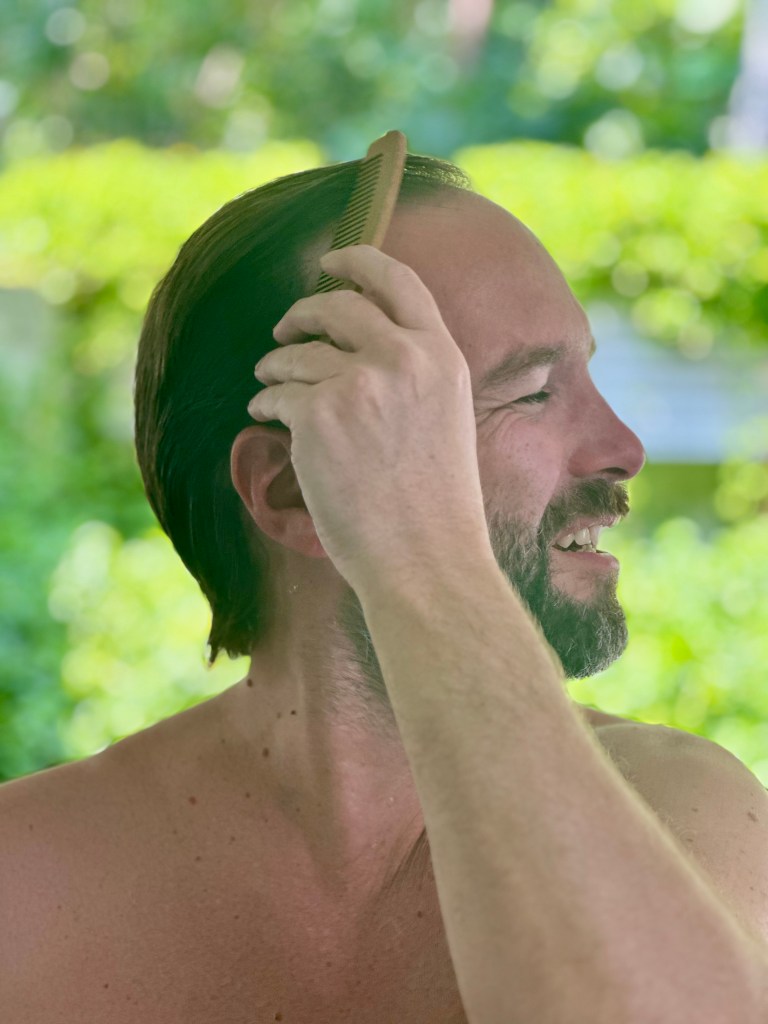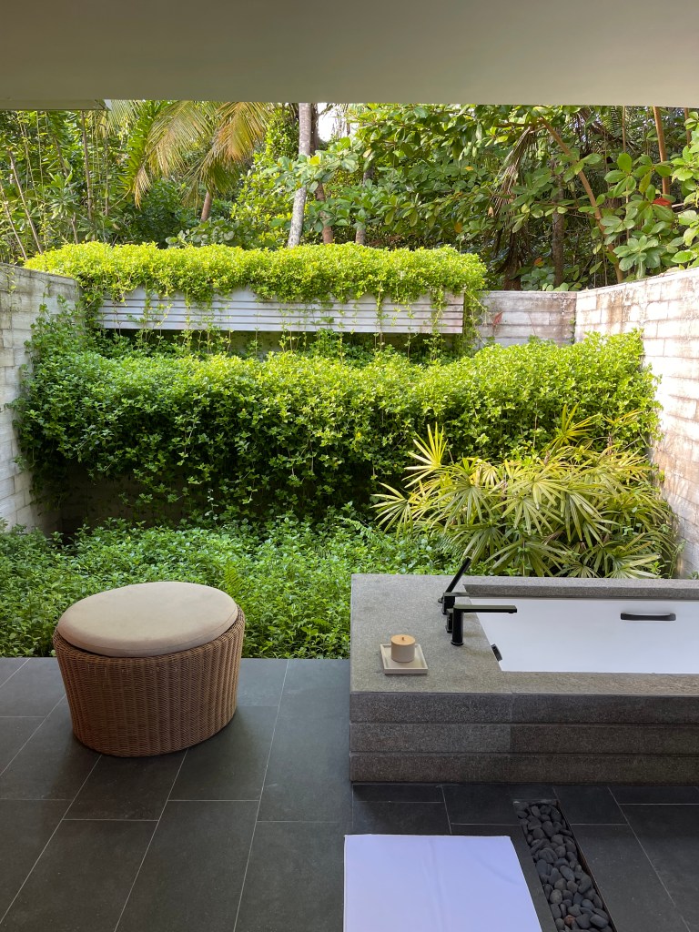 Kupaona je savršena. Kao spa u džungli! Sve je na otvorenom. Pogled na zeleni vrt i krošnje kokosovih palmi. Navečer ipak pogledaš dva puta oko sebe da te ne zaskoči neki ljenjivac iz tog žbunja – ali nema tu ničeg opasnijeg od guštera ili šišmiša…