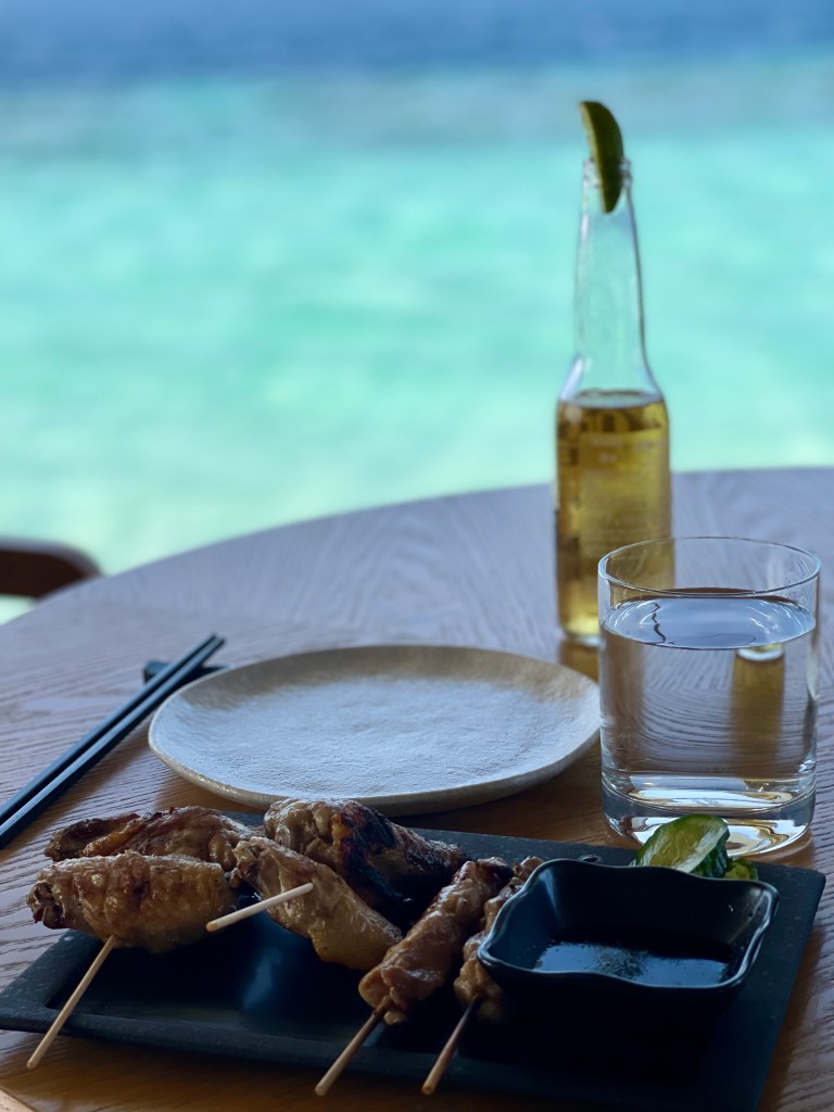 Moje omiljeno mjesto na otoku je Yakitori Bar. Paviljon koji se nasukao na pijesak ispod kokosovih palmi. Tu smo svaki dan ručali. Hobu sa grila ili tako nešto. Neku salatu. Uvijek neki azijski twist, ali savršeno lagano, ljetno i ukusno. Općenito je ovo bio glavno mjesto za ručak. Kasnije se isprazni, iako je okružen predivnom plažom i otvoren je do kasno navečer.