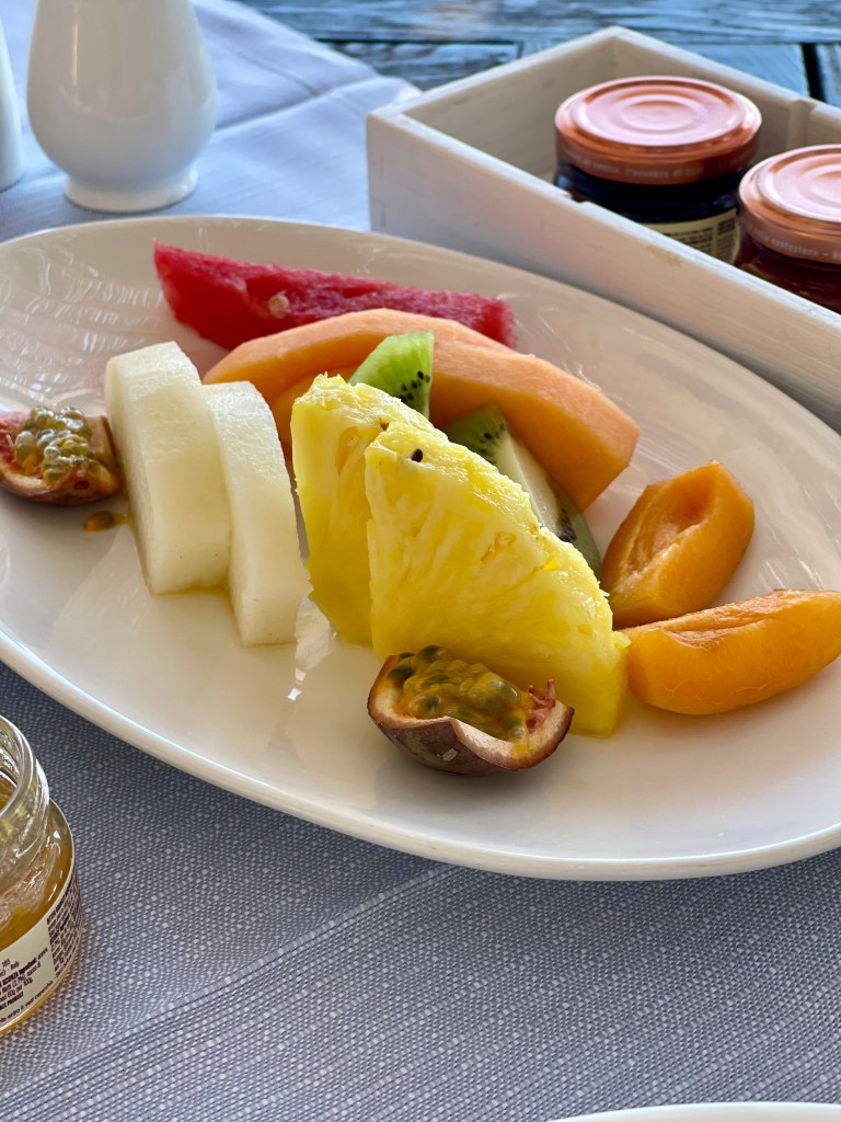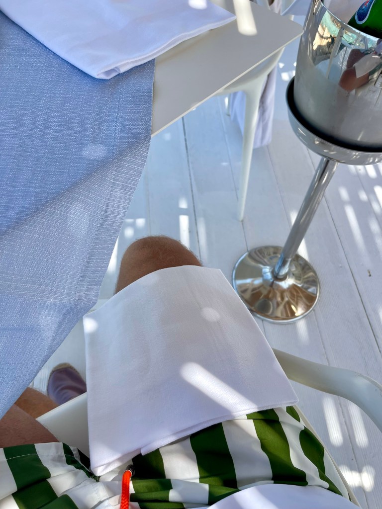 Ali, pogađate, najveći kapital ove sobe su dvije natkrivene terase, jedna koja gleda prema ribnjacima tj. bazenima, a druga prema moru. To je naš dnevni i noćni boravak. Tu se doručkuje, tu se spava, tu se izležava i čita… to je naša potpuna privatnost uz more. Toliko smo blizu mora da me sobe podsjećaju na one drvene kabine za presvlačenje iz starih filmova. Samo da se ne upiškimo od šuma valova i sreće, naravno!!