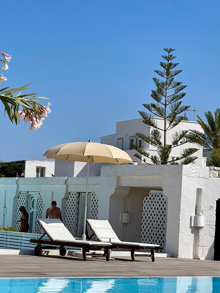 La Peschiera je mali hotelčić sa restoranom i plažom u blizini slatkog Monopolija. Naravno, La Peschiera nije tipičan ljetni hotel. Na prvu hotel podsjeća na staro imanje, ali ubrzo shvaćate da su labirinti bazena, terasa, soba i vrtova koji se otvraju pred vama zapravo nekad bili ribnjaci, Staze su natkrili trstikom obraslom u buganviliju koje vas vode prema privatnoj pješčanoj plaži. Meni je to najveći luksuz koji možete zamisliti.