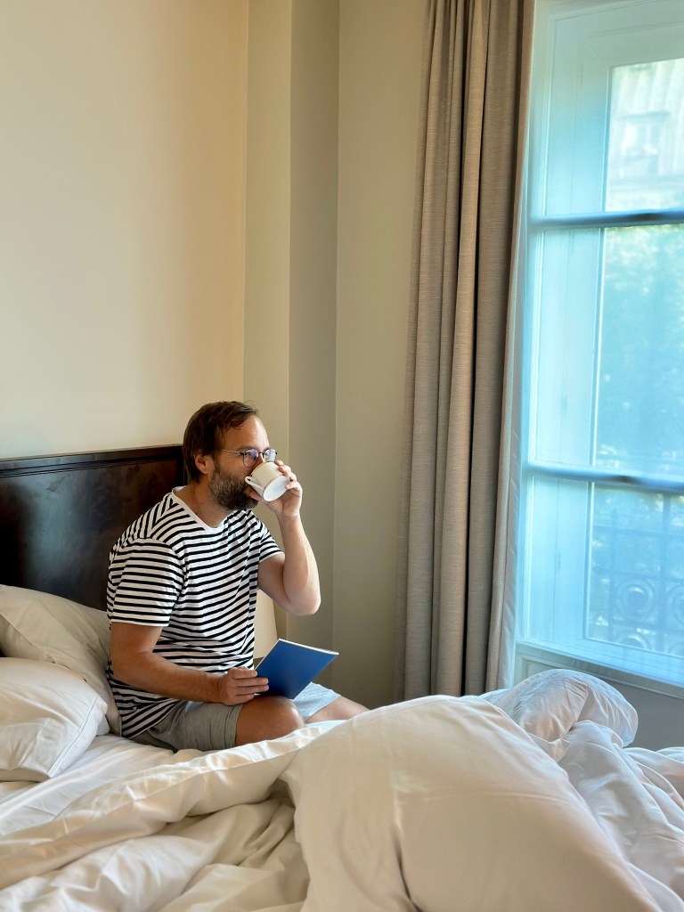 Sobe su male ali sa ogromnim francuskim prozorima koji gledaju prema Montmartru. Sviđaju mi se ti pomalo retro prostori sa bijelom posteljinom i zavjesama. Jednostavno su uređeni ali sa super zanimljivim detaljima koji im daju karakter. Mislim da je ideja hotela da bude pristupačan i zanimljiv. Za mlađu publiku, definitivno! Ali nitko se ovdje ne osjeća kao outcast i što je najvažnije, svi mogu mirno spavati jer je klub Mikado u basementu.